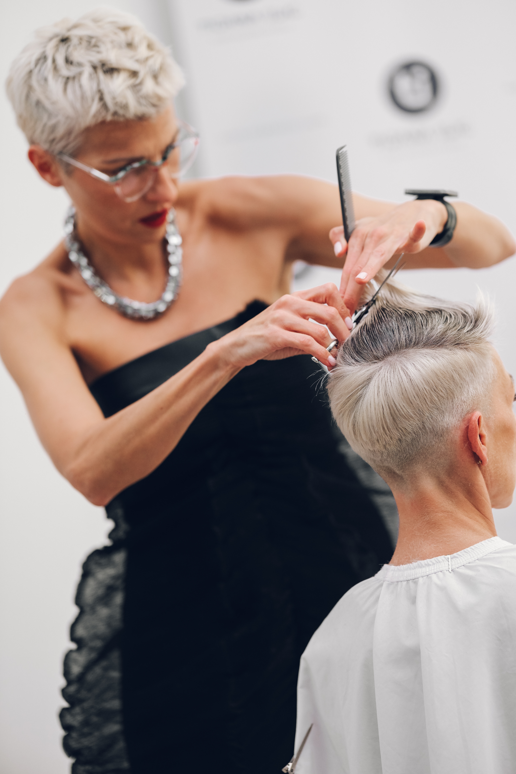 The training focuses on creative shape planning for short hair, as well as the proper use of clippers and scissors. Through a practical approach, Tijana demonstrates how to preserve mass where it is needed, achieve a feminine silhouette, and ensure easy maintenance, even on bleached or gray hair with altered texture.