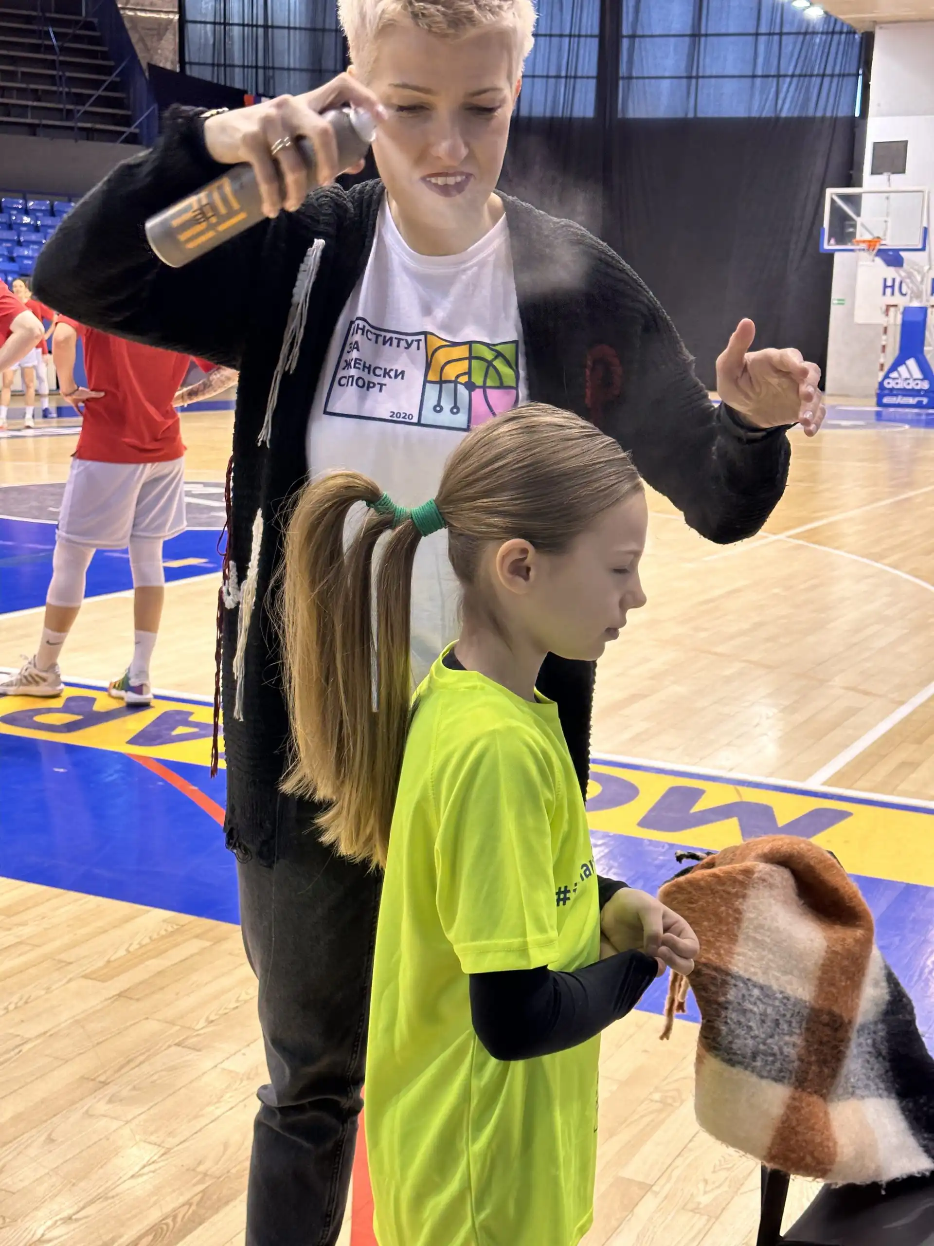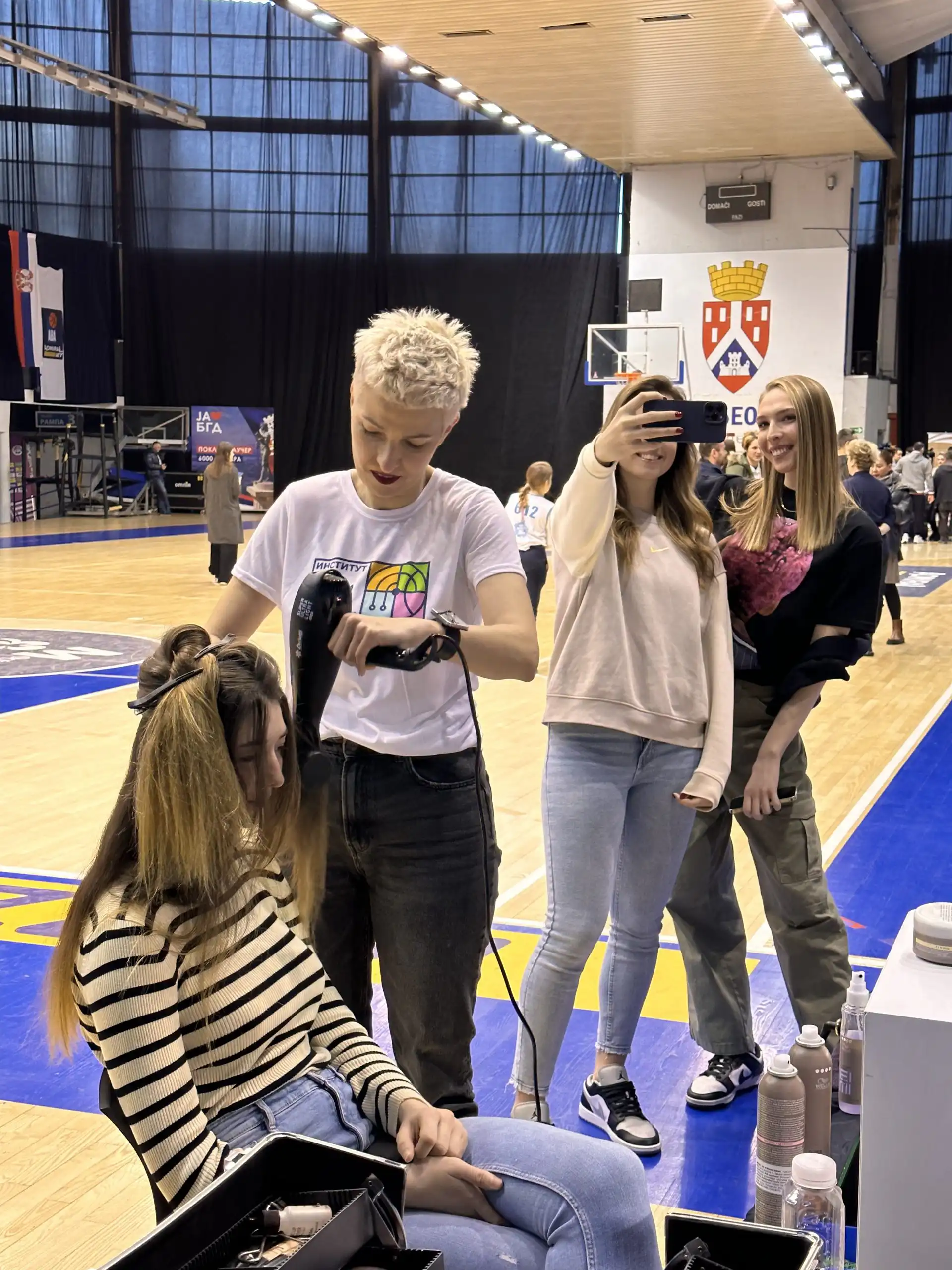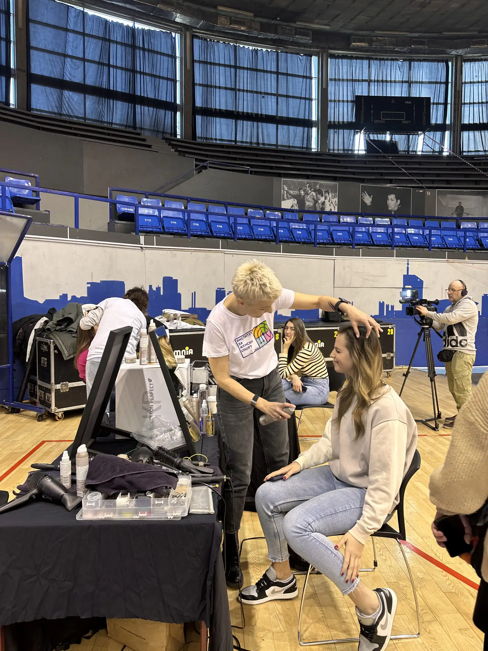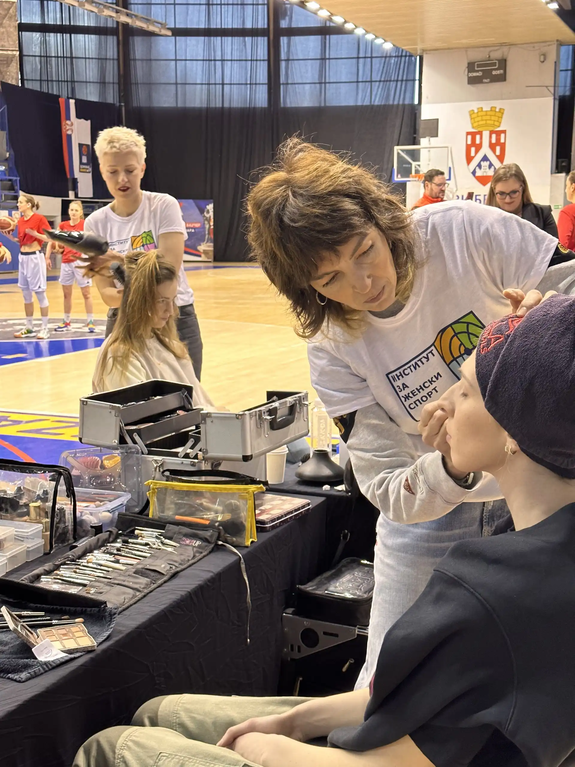 In the “Ranko Zeravica” sports hall, next to the court, during and after practice, they made a performance out of styling the basketball players. The goal of this performance was to point out that women in sports face numerous stereotypes on a daily basis and that they, like other women, have their habits, preferred treatments and beauty rituals.